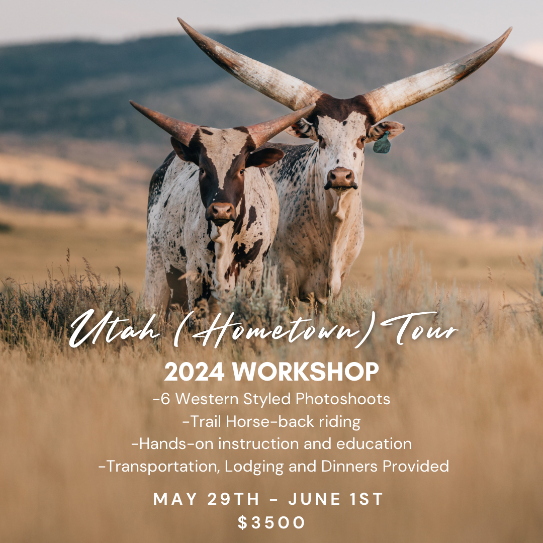 Join me as I take you along to all of my favorite places in Utah! Each location looks vastly different and will give amazing variety to your portfolio! Plus horseback riding, Western photoshoots, and instruction from Cattleman Photography!